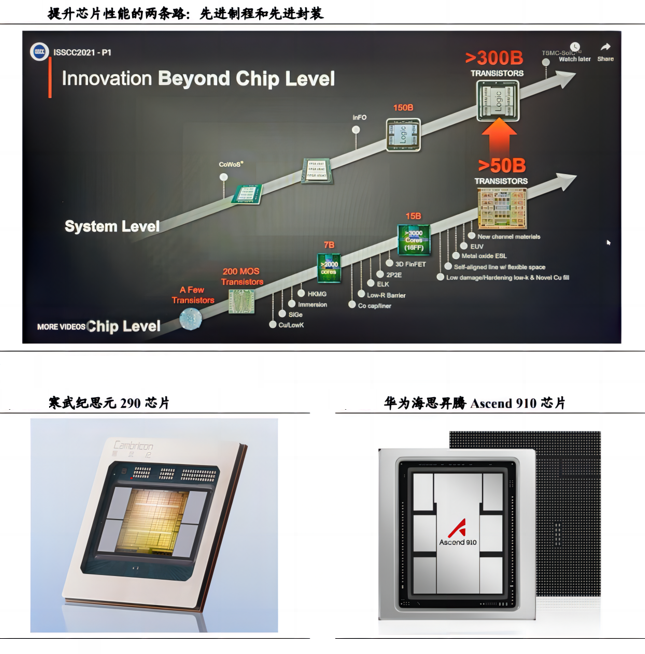 1. 先進制程受限,先進封裝/Chiplet提升算力,必有取舍。在技術可獲得的前提下,提升芯片性能,先進制程升級是首選,先進封裝則錦上添花。